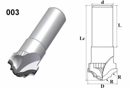 Профильные концевые фрезы могут изготавливаться под заказ. Срок изготовления таких профильных концевых фрез составляет до 3 недель. При индивидуальном заказе следует указывать d, D, L, Lc. | ||||||||||||